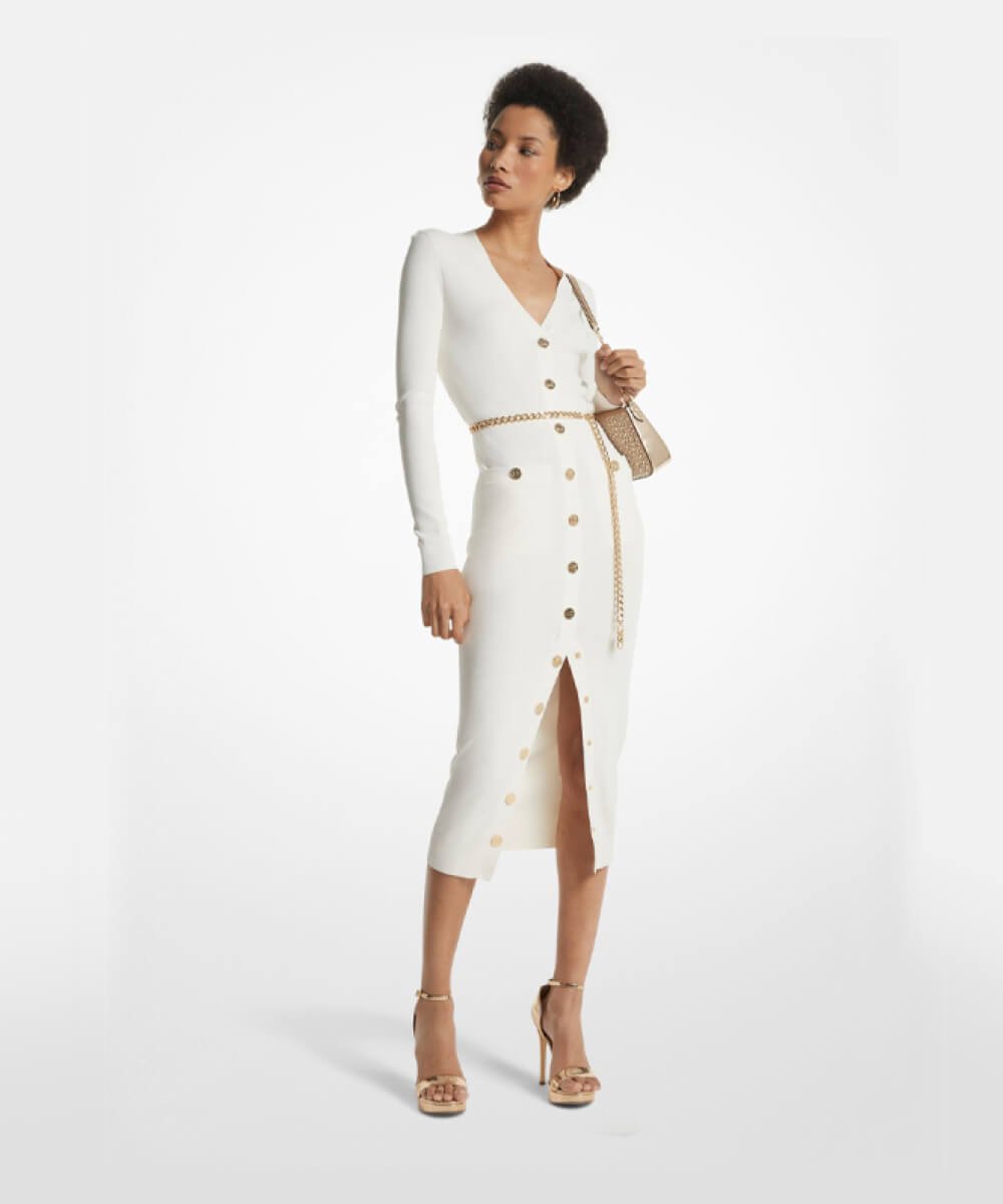 Pinstriped Satin Belted Shirtdress